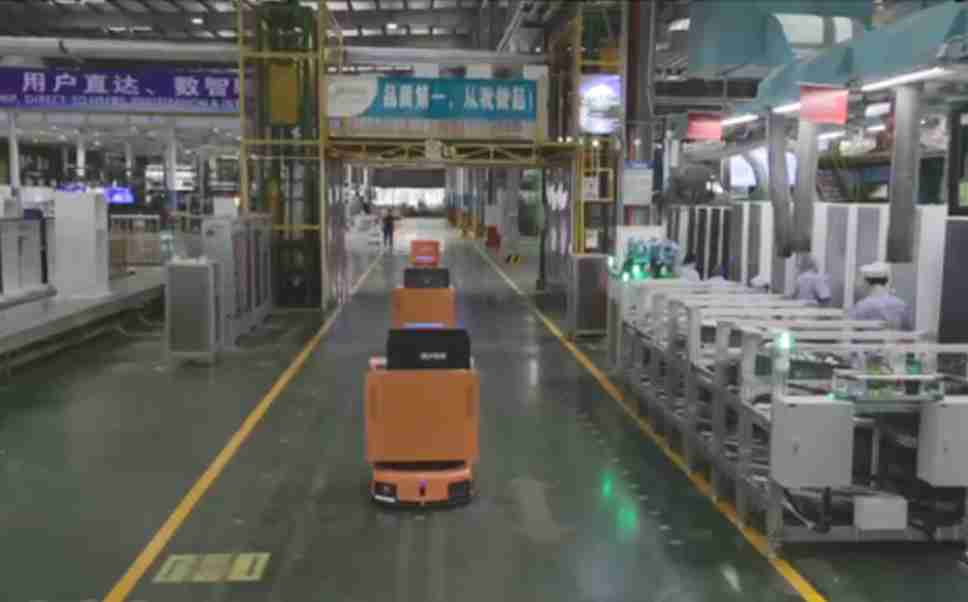 为车载冰箱物流配送打造的智能解决方案,,,,包含产中物流通过潜伏举升AMR搬运至线边,,,,产后成品物流智能仓储,,,,流程包含产中物流智能齐套入库,,线边安灯叫料AMR智能配送至线边,,,成品入库、、、出库,,,,通过无人堆高车机器人,,,,智能仓储管理替代人工作业管理,,,,实现更高存储、、、、更高效率、、、更具柔性化的解决方案。。。